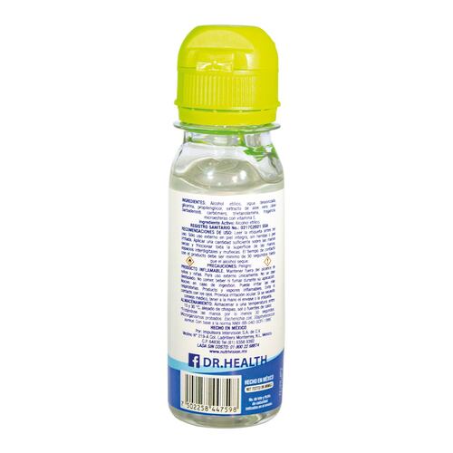 El Gel Antiséptico Dr Health es un complemento ideal para la higiene necesaria en sus manos. Es un producto que limpia sin necesidad de usar agua y desinfecta las manos sin usar jabón, dejandolas limpias y humectadas y con un refrescante aroma a menta. El tiempo de contacto con el producto debe ser mínimo de 30 segundos hasta que el alcohol seque. Ingrediente activo Alcohol etílico 70% REGISTRO SANITARIO No. 0217C2021 SSA