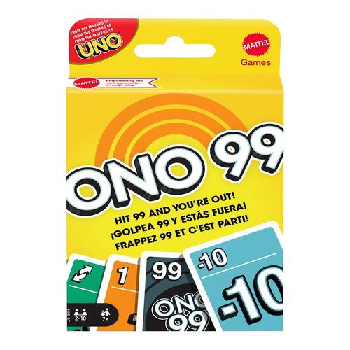 En el rápido juego de cartas ONO 99, que además es sencillo de aprender, entre 2 y 6 jugadores tratan de no ser la persona que coloca la carta en la pila para tirar que haga que la suma total sea 99 o más. Cada carta cuenta y, a medida que cada jugador coloca una en la pila para tirar, tiene que indicar el total. ¡No lo olvides! El objetivo es mantener el total por debajo de 99. Ten cuidado porque una de las cartas es la ONO 99 si un jugador la recibe o la saca de la pila, ¡debe conservarla y no la puede jugar! El juego de cartas ONO 99 puede ser una gran práctica para los niños que están aprendiendo a sumar y restar. El último jugador que quede en el juego gana. Es una gran opción para una noche de juegos o para llevarlo cuando viajas. Los colores y las decoraciones pueden variar. Pide tus productos desde la comodidad de tu hogar. Sólo Sanborns.