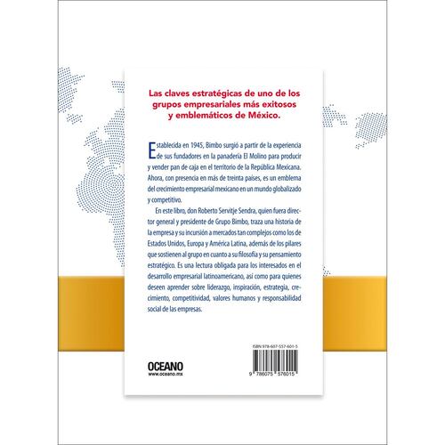 Las claves estratégicas de uno de los grupos empresariales más exitosos y emblemáticos de México. Establecida en 1945, Bimbo surgió a partir de la experiencia de sus fundadores en la panadería El Molino para producir y vender pan de caja en el territorio de la república mexicana. Ahora, con presencia en más de treinta países, es un emblema del crecimiento empresarial mexicano en un mundo globalizado y competitivo. En este libro, don Roberto Servitje Sendra, quien fuera director general y presidente de Grupo Bimbo, traza una historia de la empresa y su incursión a mercados tan complejos como los de Estados Unidos, Europa y América Latina, además de los pilares que sostienen al grupo en cuanto a su filosofía y su pensamiento estratégico. Es una lectura obligada para los interesados en el desarrollo empresarial latinoamericano, así como para quienes deseen aprender sobre liderazgo, inspiración, estrategia, crecimiento, competitividad, valores humanos de las empresas.