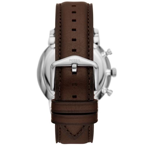 Reloj Fossil Neutra para caballero modelo FS6018SET con movimiento cuarzo, cuenta con una caja de 44 mm de acero inoxidable en color plateado, correa de piel en color marrón de 22 mm, carátula color azul, con cronómetro y su hermeticidad es de 5 ATM.