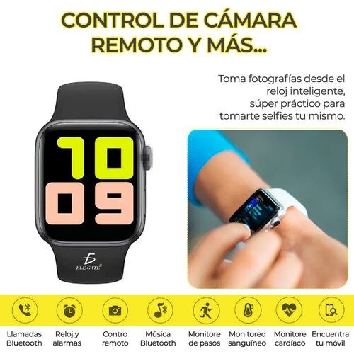 Disfruta de tu Smart Watch T500 y todas sus funciones especiales como monitorear tu ritmo cardiaco, calidad de sueño. Además de recibir notificaciones de tus redes sociales favoritas. Además de contar con un diseño único y ergonómico. Se puede marcar o contestar teléfono desde el reloj - Pantalla totalmente táctil HD 1,54” - Compatible con Android - Diseño fino y resistente. - La carcasa está hecha de aleación de Metal de alta calidad. -Excelente rendimiento y resistencia al desgaste, adecuado para el uso diario de los deportes. - Monitoriza la frecuencia cardíaca en tiempo real. - Sensor óptico de frecuencia cardíaca integrado, combinado con un algoritmo inteligente, ya sea la frecuencia cardíaca en reposo o la frecuencia cardíaca dinámica que proporcionan un seguimiento preciso a través de datos científicamente cuantificados. Aprenda su propia salud del ritmo cardíaco a diario. OJO: este no es un dispositivo médico, es sólo de referencia. - Modelo deportivo - Monitoreo de sueño: analice su estado de sueño, da un informe. Monitor de sueño Sigue la calidad de tu sueño cada noche. - Duración de batería 4 horas de uso continuo 12 de uso moderado - Función de encontrar su teléfono Anti-Pérdida en ambos sentidos, pérdida del celular o pérdida del reloj - Recordatorio de sedentarismo cuándo haz estado sentada o quito(a) mucho tiempo. - Menú inteligente fluido. Es mejor que los dispositivos tradicionales Ul, con un toque y arrastre de forma sencilla, cómodo y rápido para satisfacer todas sus necesidades. - Llamada Bluetooth, visualización de contenido de notificaciones. - Conectar al teléfono, responder o marcar llamadas sincronización de notificaciones de todas las aplicaciones de redes sociales Bluetooth 4,0, compatible con Android 5.0 - Control remoto de la Cámara, para tomar fotos a distancia.