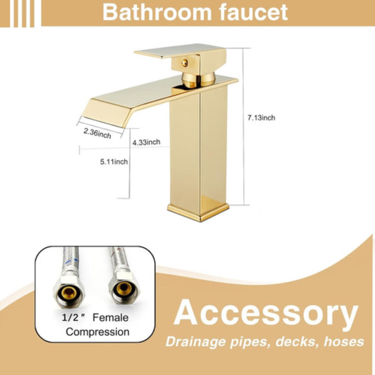 Grifo mezclador de baño monomando dorado, ¡ideal para lavabos, baños y lavabos!