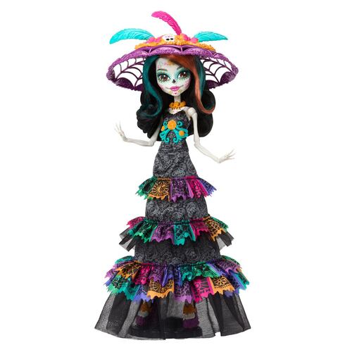 Monster High rinde homenaje a las tradicionales calaveras mexicanas con la impresionante muñeca Skelita Día de Muertos. Su colorido vestido está adornado con un estilo similar al del papel picado, por lo que cuando lo agite la brisa será señal de que los espíritus de los difuntos han llegado. Incluye soporte para muñeca. La muñeca no se puede mantener de pie por sí sola. Los colores y las decoraciones pueden variar.