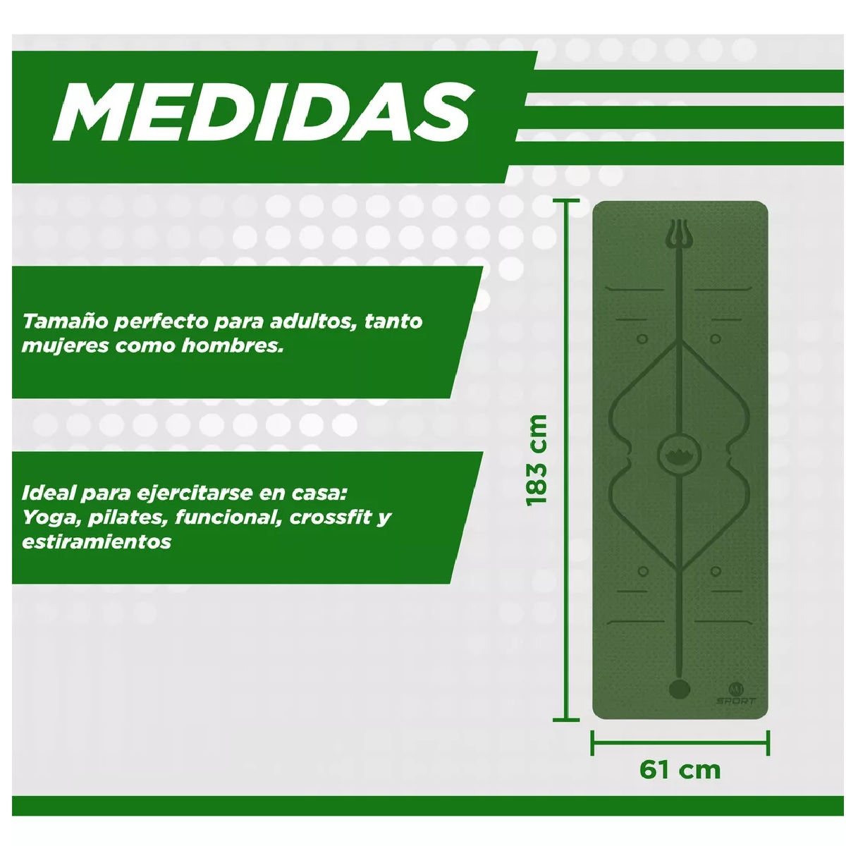 Tapete Antideslizante De Yoga Mat Tpe Con Líneas De Guía Color Verde