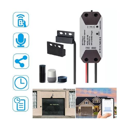 Este controlador inteligente de garaje funciona con el abridor de garaje y hace que se pueda controlar por teléfono, fácil de instalar y sin cambios en su garaje, solo uno para hacer que el garaje sea inteligente, y tendrá esta función para abrir y cerrar la puerta del garaje por teléfono, por horarios, por voz (funciona con Alexa y google home), consulta de estado, consulta de registros de apertura/cierre, etc.