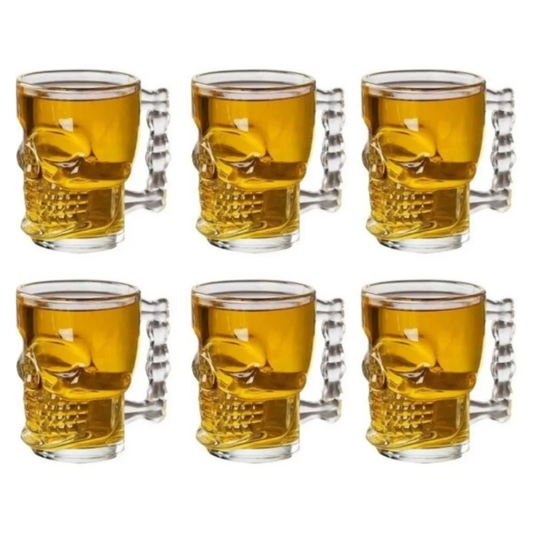 Pack 6 Tarros Cerveza Calaca Vaso Vidrio Calavera 460ml