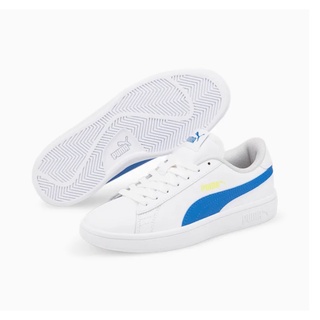 Tenis Casual Puma Smash V2 JR Blanco con azul 365170 33 Unisex.