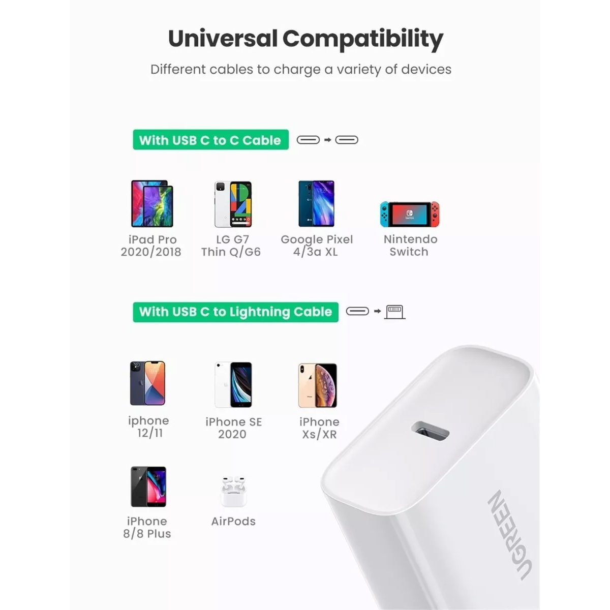 Cargador Carga Rapida Ugreen 20 W Para iPhone