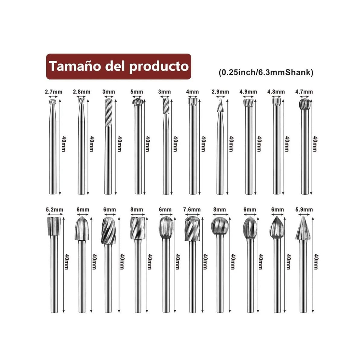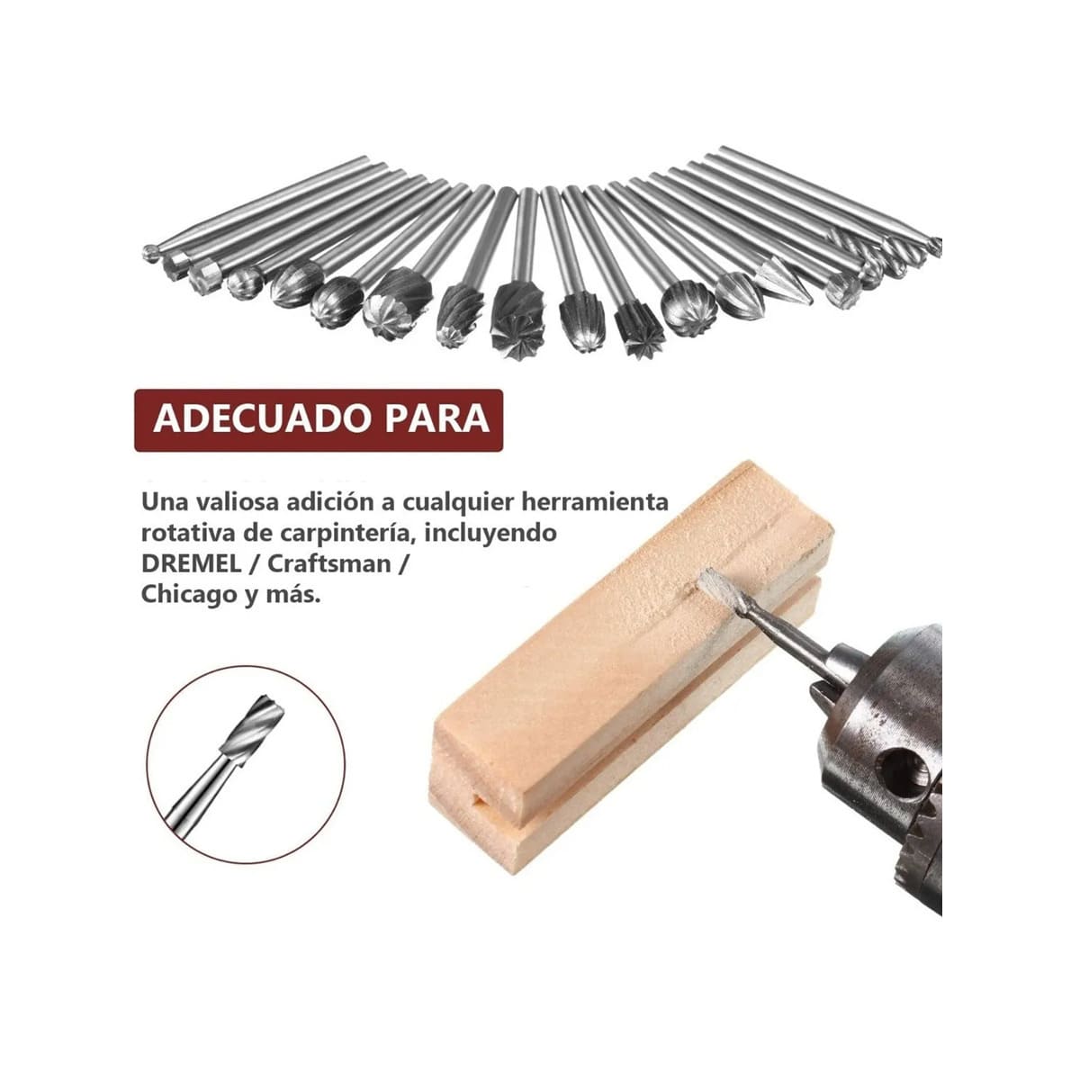 20 Pzs Kit Fresas Para Madera Carburo Para Dremel Mototool plata